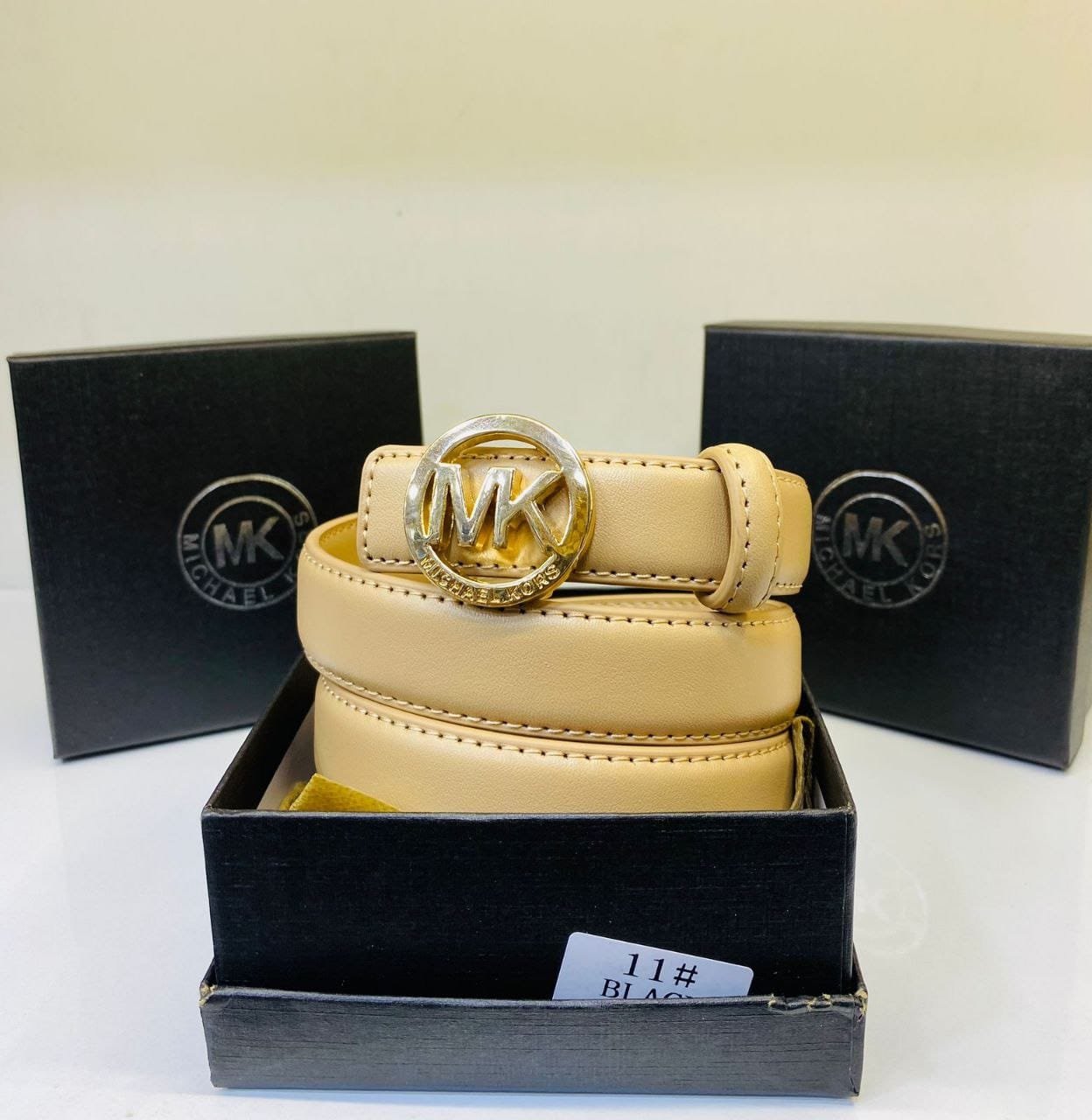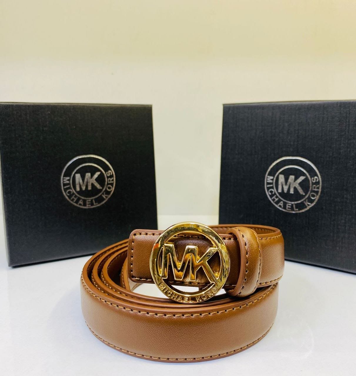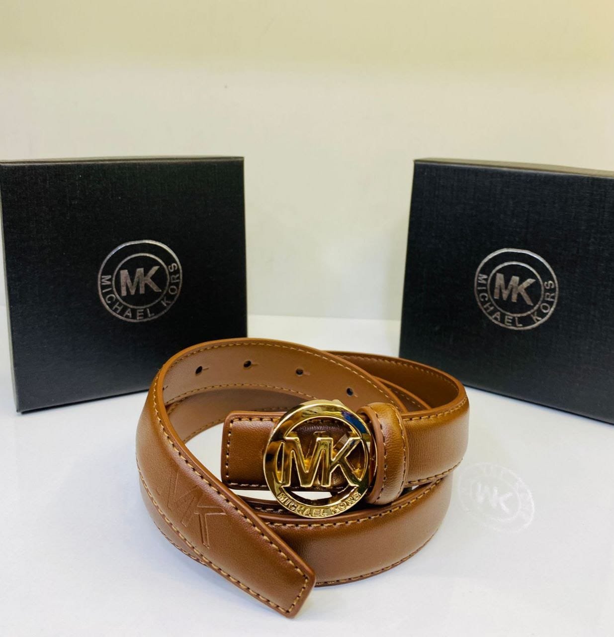 • Modèle : Ceinture en cuir avec boucle MK dorée